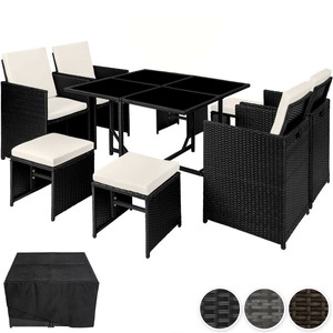 Amazon De Casaria Poly Rattan Sitzgarnitur Cube 7cm Dicke Auflagen 4 Stuhle 4 Hocker Tisch 9 Tlg Sitzgruppe Gartenmobel Set