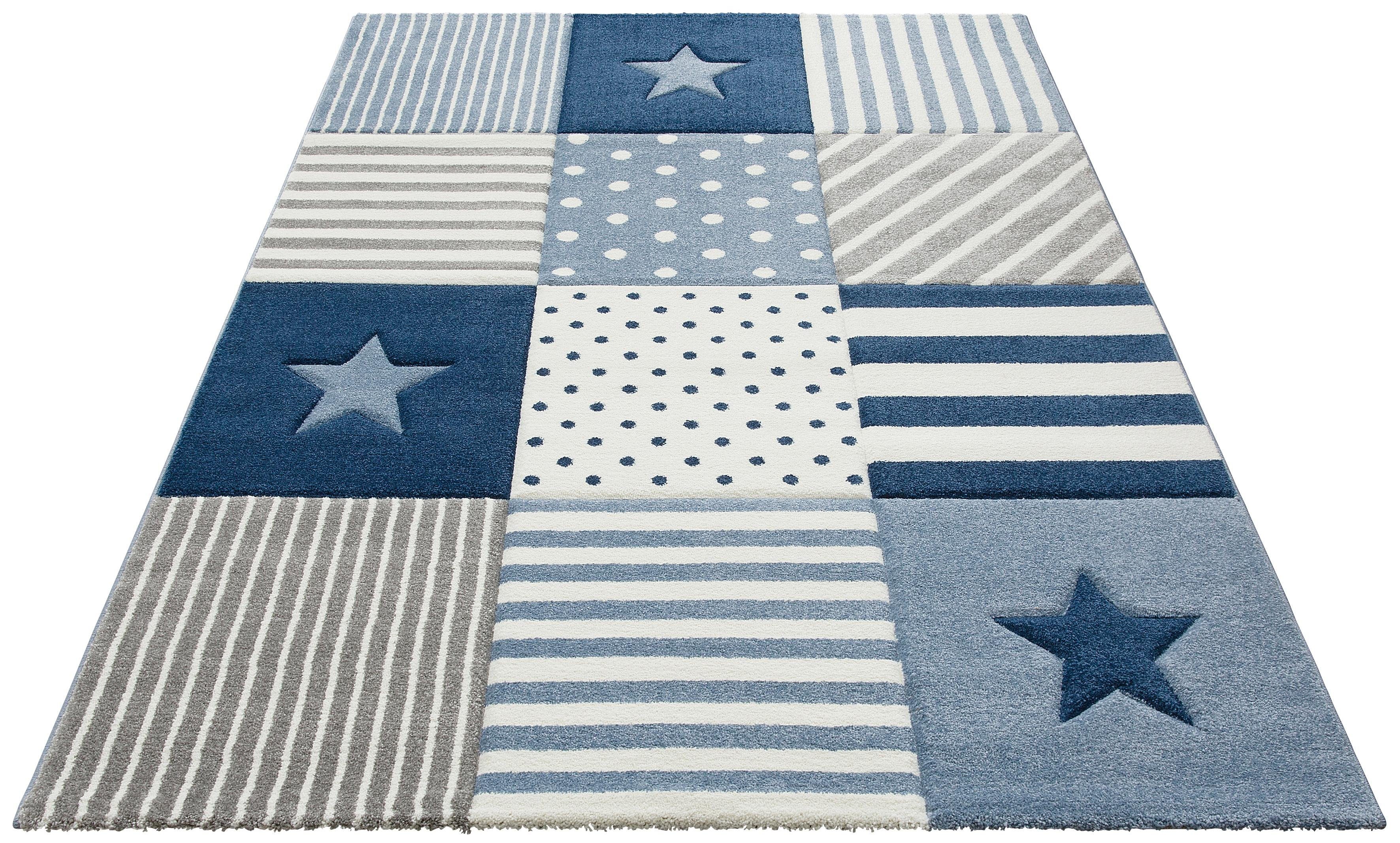 Kinderteppich Jungen Sterne Muster Blau Teppich4kids